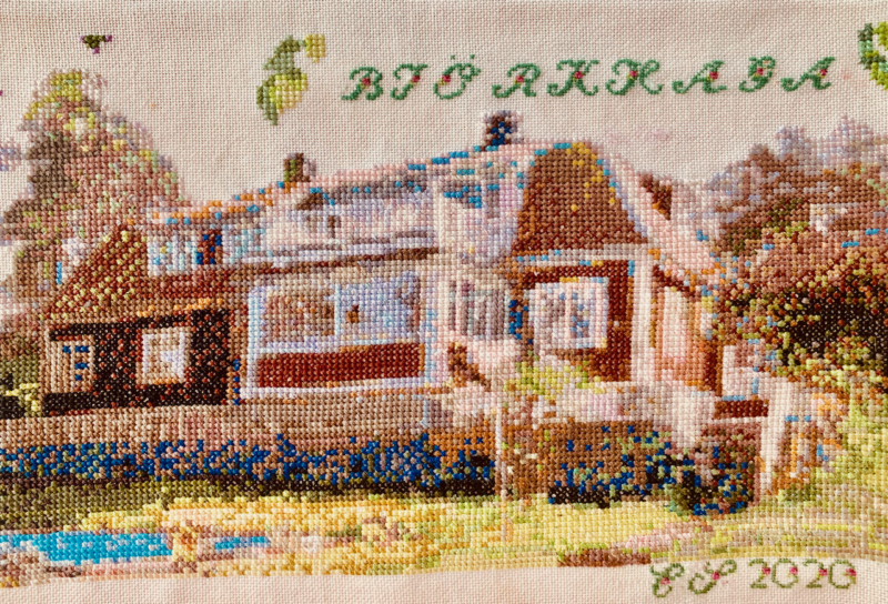 I denna tavla har jag broderat in alla fina minnen under dessa år - varenda stygn är sytt med kärlek till barn och barnbarn som berikat hemmet och fyllt det med LIV. Jag har också broderat in min längtan och mina önskningar att vi snart skall kunna få en sommar tillsammans där på vårt älskade Björkhaga - kunna umgås och kramas utan risk för Corona-smitta!