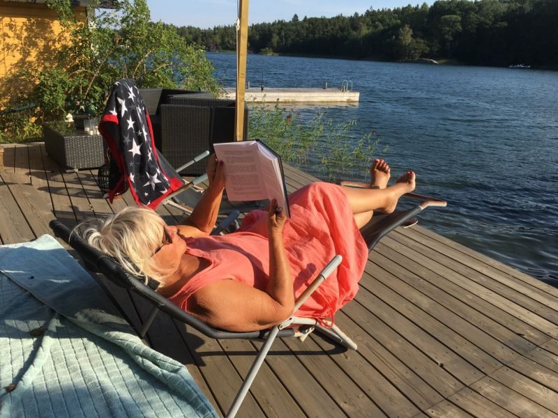 Lässtund i solstolen nere vid bryggan! Boken av Napoleon Hill: "Tänk rätt, bli framgångsrik" ger mig nya insikter som jag nu tar till mig under mina 120 Dagar mot Ruby!