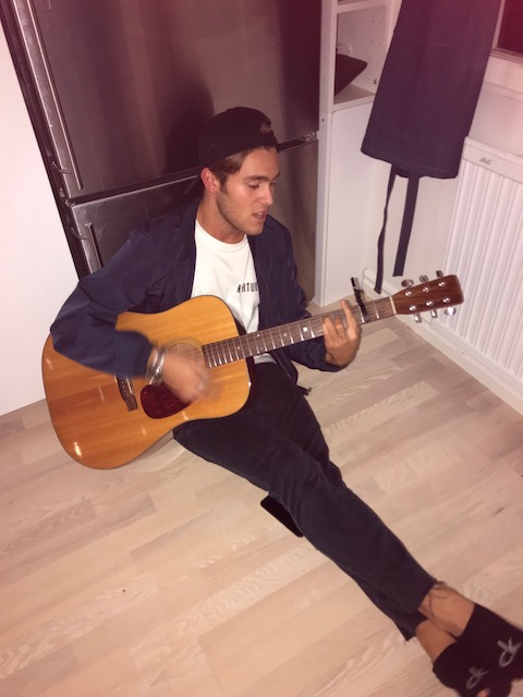 Vi fortsatte hem till Niclas och Benjamin hittade en gitarr och tyckte att köksgolvet var ett ypperligt ställe att sätta sig och lira på!