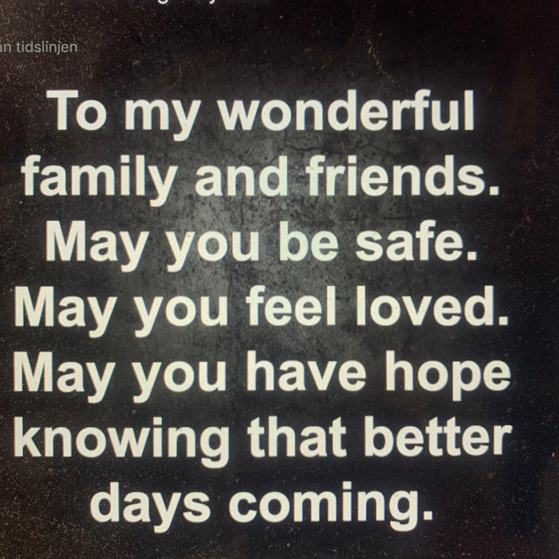 Hallå alla ni som läser min blogg! I dessa tider behöver vi ta till oss de tankar som är bra för oss och som inger hopp och förtröstan!