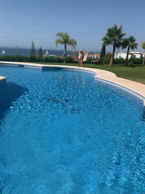 VÅR UNDERBARA POOL SOM NU HÅLLER 28 GRADER SIMMAR VI I VARJE MORGON.