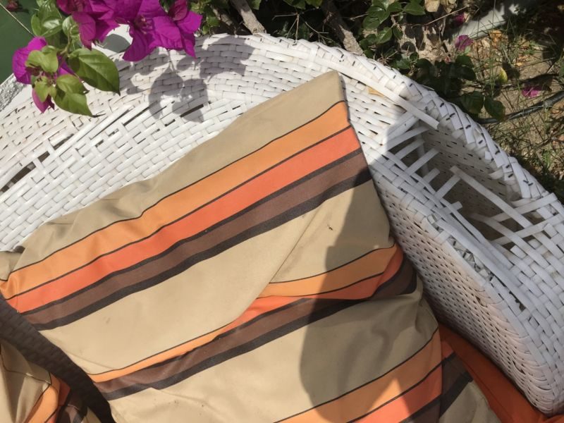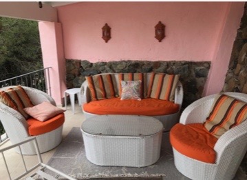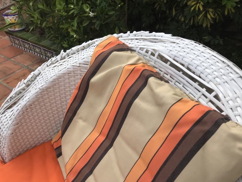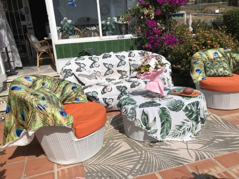 Det var den här soffgruppen som Pernilla ville bli av med. Jag, som hunnit provsitta den och tyckt att den var superskön och bekväm, tyckte att den skulle passa så bra i min trädgård i Nerja.
