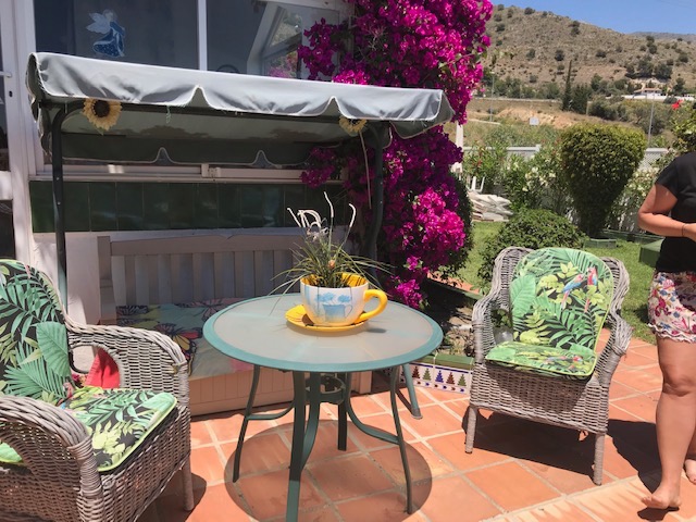 Här - i vår trädgård i "Plaza Mariposa" hoppades jag att möbeln skulle få plats .....