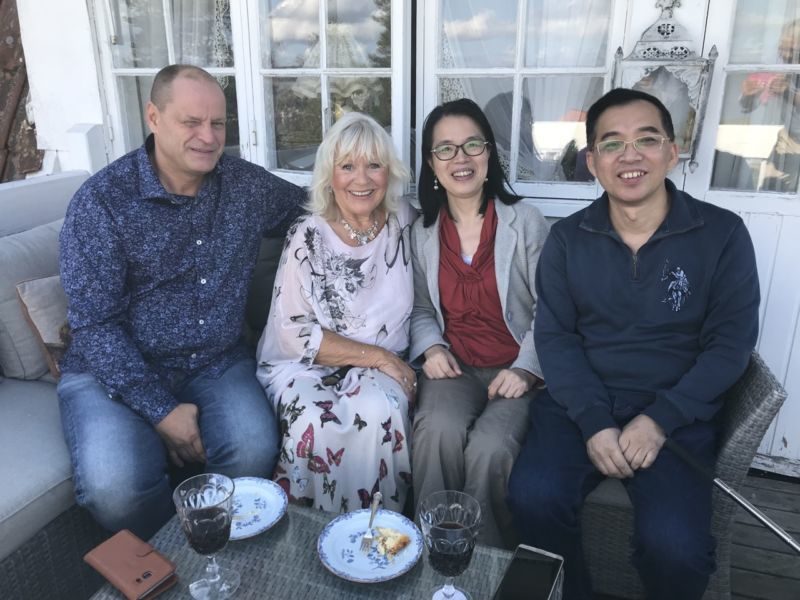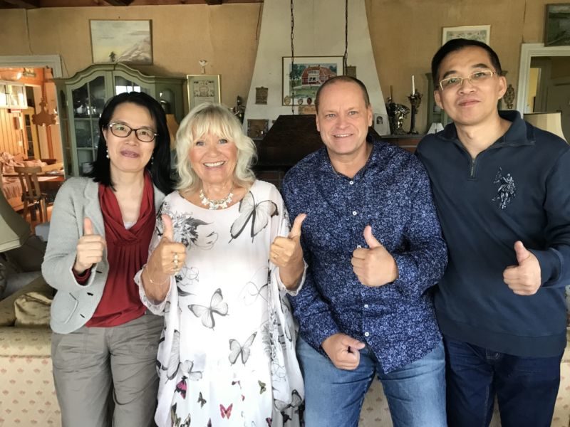 Här smider jag framtidsplaner tillsammans med Jonas Gylling på Silkflower och Gail och hennes man som kommit från Kina för att vara med på Formex-mässan. Silkflower har jag haft en fruktbart samarbete sedan 20 år tillbaka (!!!!) eftersom det är det företaget som distribuerar mina Christina-änglar. (Du kan köpa dem via min web-shop (Klicka på Änglar!)