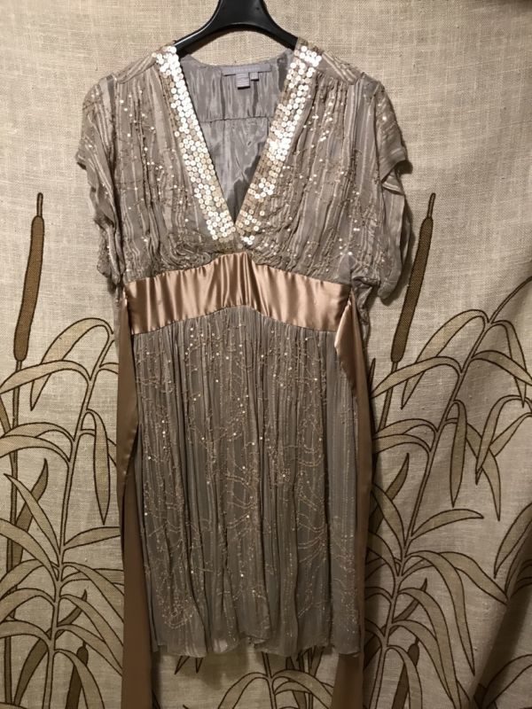 Fest & Scen Nr 5: Mycket exklusiv pärlbroderad sidenklänning. Pris: 4.800:-