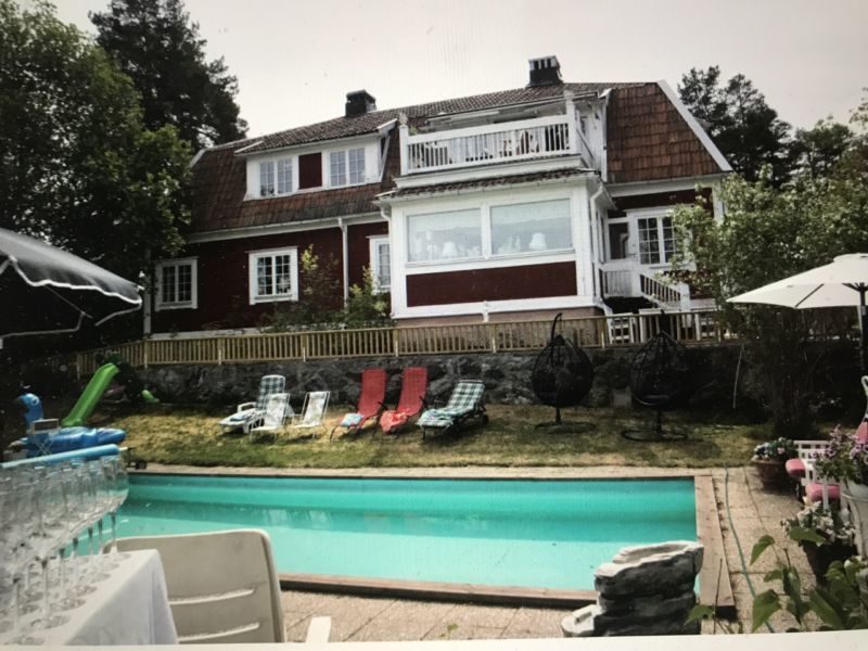 Denna påfågel skulle vara i poolen! Den hade jag köpt i Marbella och fraktat hem just för att den skulle simma i poolen på min FEST!