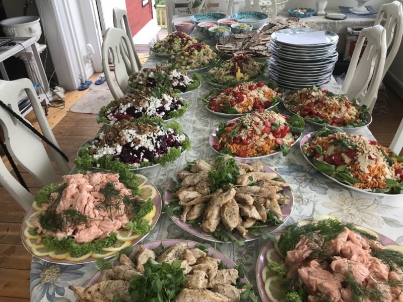 Ulrika Davidsson - som stod för Cateringen - kunde börja plocka ut all mat hon lagat ...........