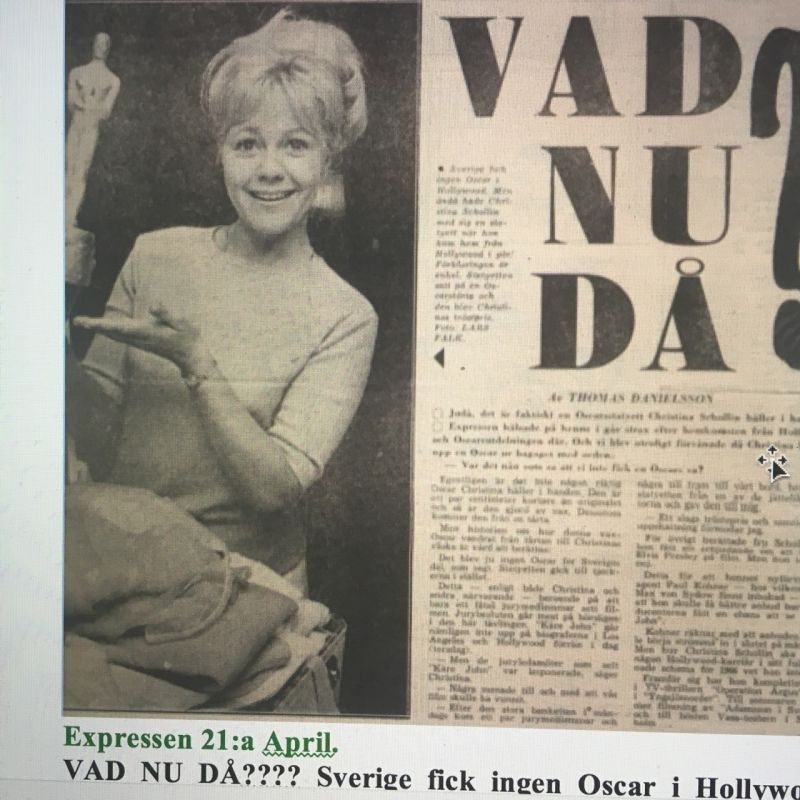 Så här i Oscars-tider, - så synd att inte "En man som heter Ove" tog hem en Oscar!!!!!! - så minns jag när jag var i Hollywood 1966 för Oscars-galan eftersom "Käre John" var nominerad för en Oscar för bästa utländska film. Vårt gäng: Jarl Kulle och jag, Göran Lindgren (Sandrews) Regissören LarsMagnus Lindgren och Gunilla Pontén som gjorde kläderna. Tidningarna skrev att vi hade Oscars i blick, när vi startade vår resa.............
