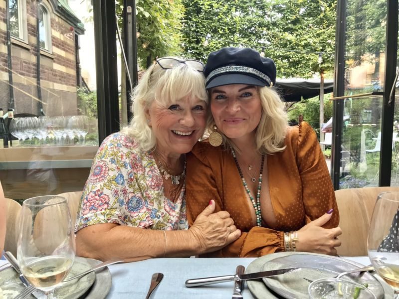 Pernilla och jag var båda klädda i Pernilla Wahlgren Collection.